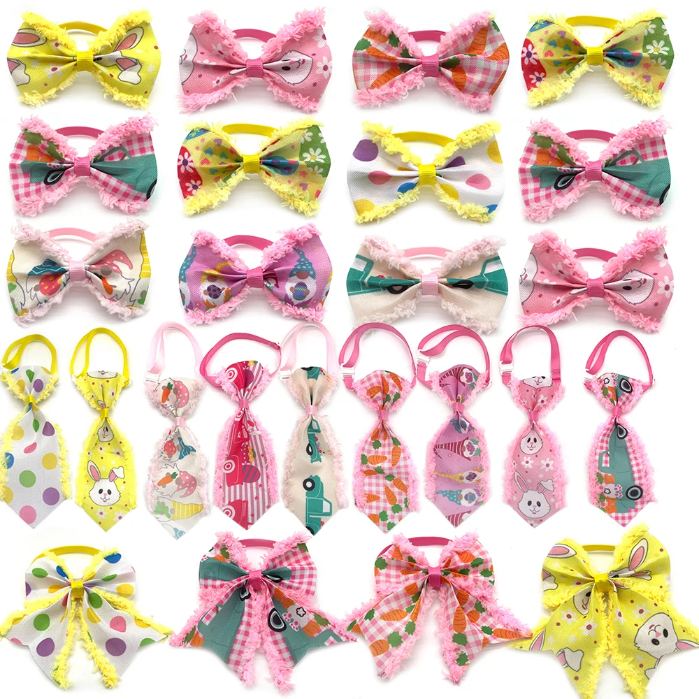 Um kit profissional de laços pet ajustáveis, leves e confortáveis, prontos para uso diário, datas comemorativas (Páscoa) ou finalização premium de grooming.