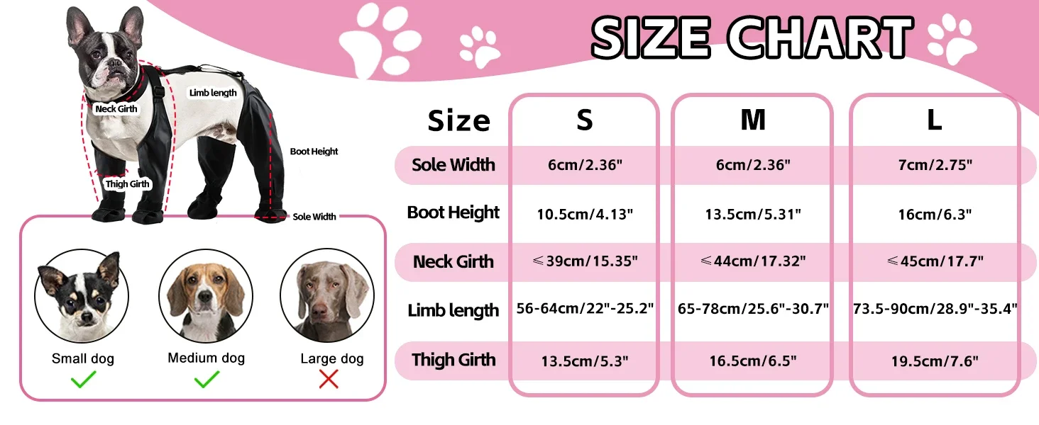Essas botas impermeáveis com suspensório ajudam a manter as patas do seu cão secas, limpas e estáveis, mesmo em ambientes difíceis.