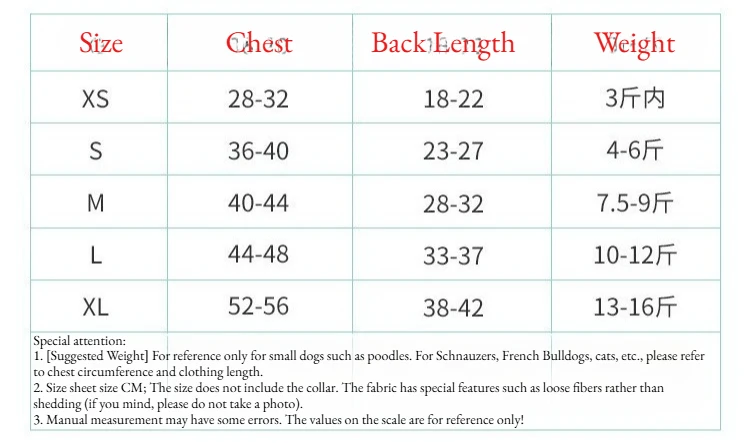 Roupas de quatro patas → priorize o comprimento das costas