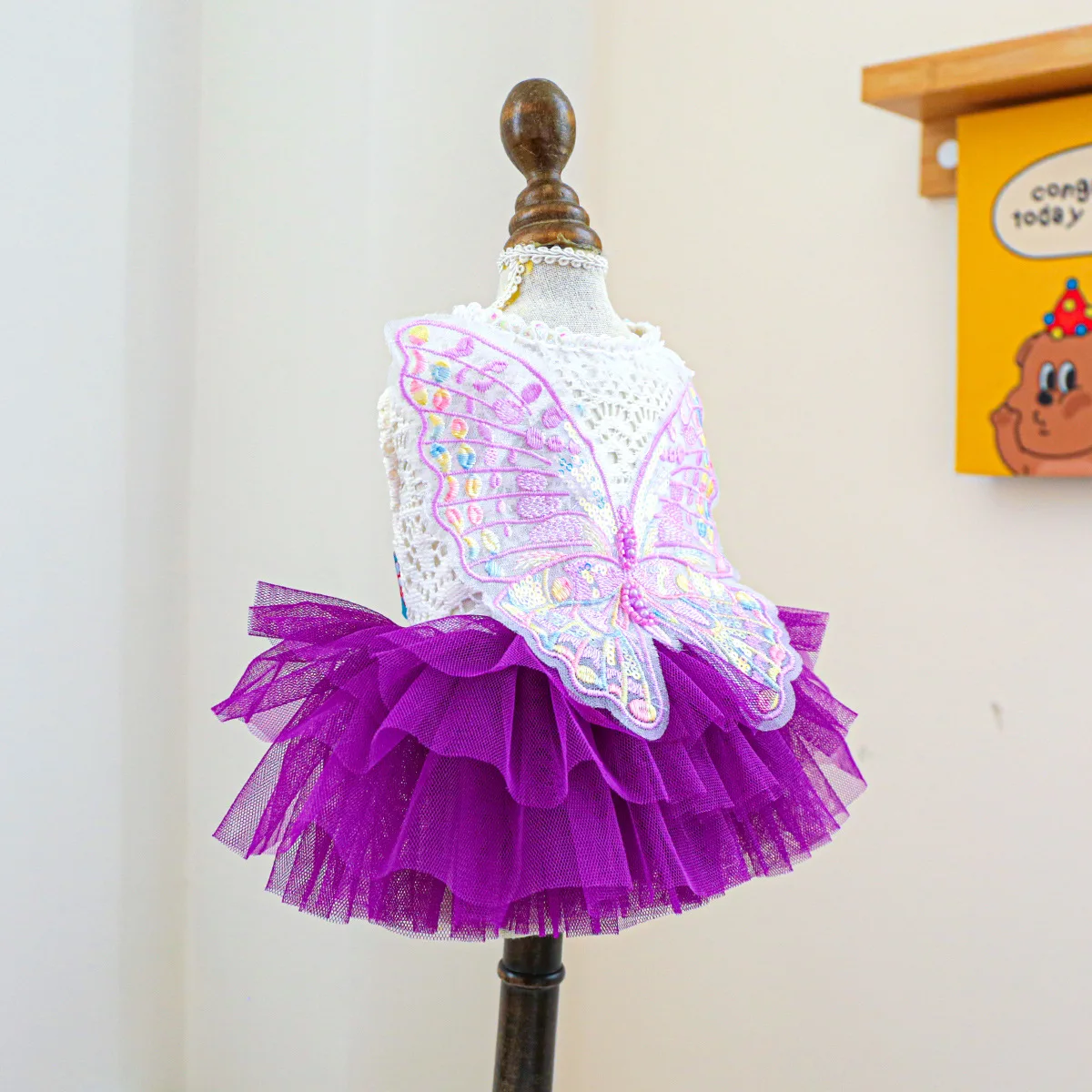 Vestido Princesa Borboleta para Cães e Gatos Pequenos em Renda e Tule – Fantasia Elegante Pet