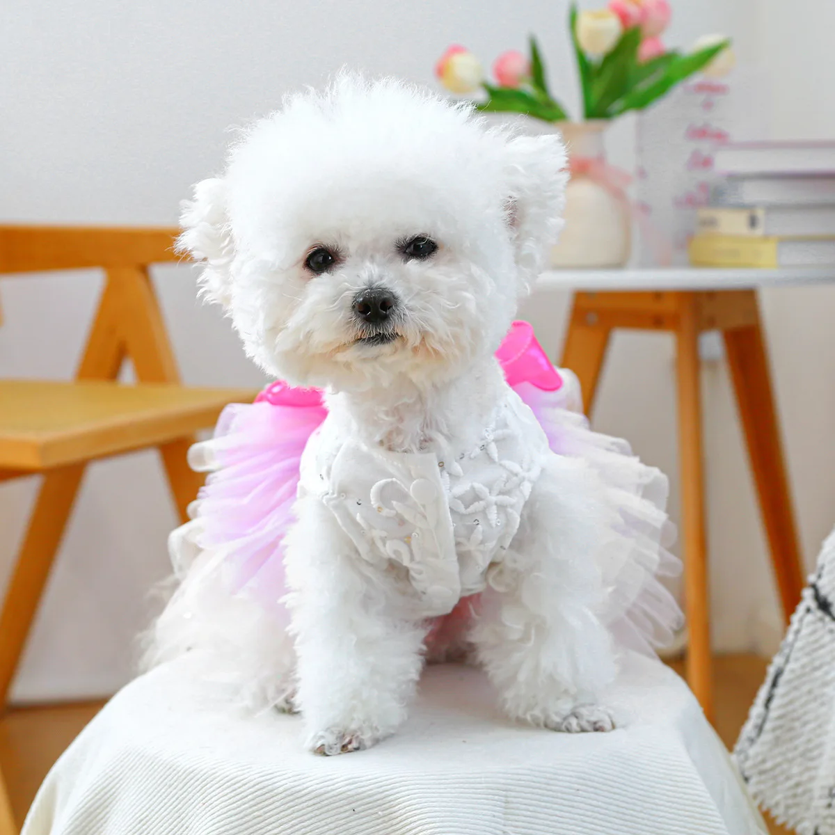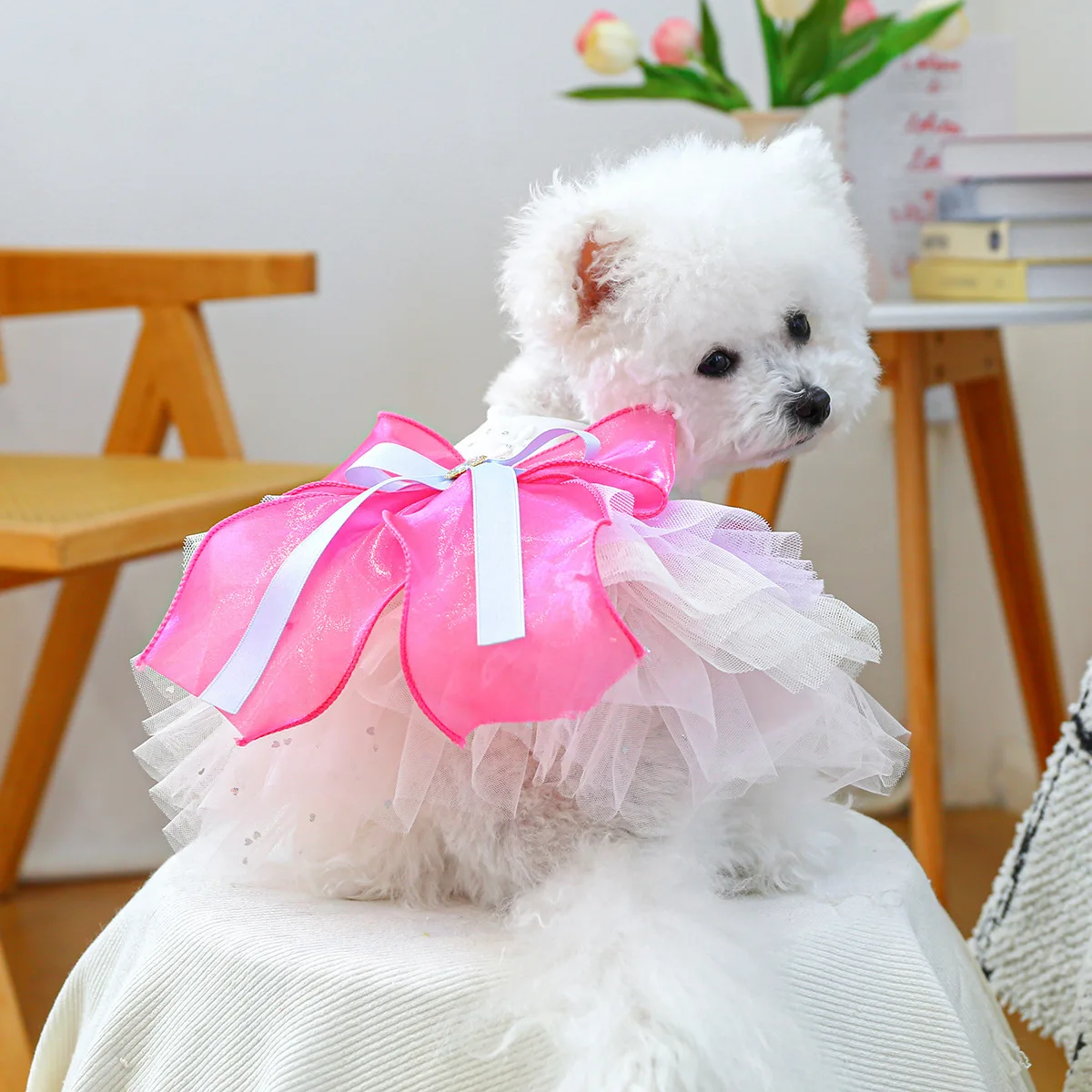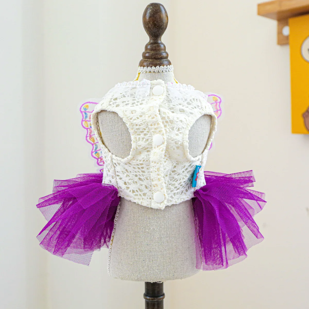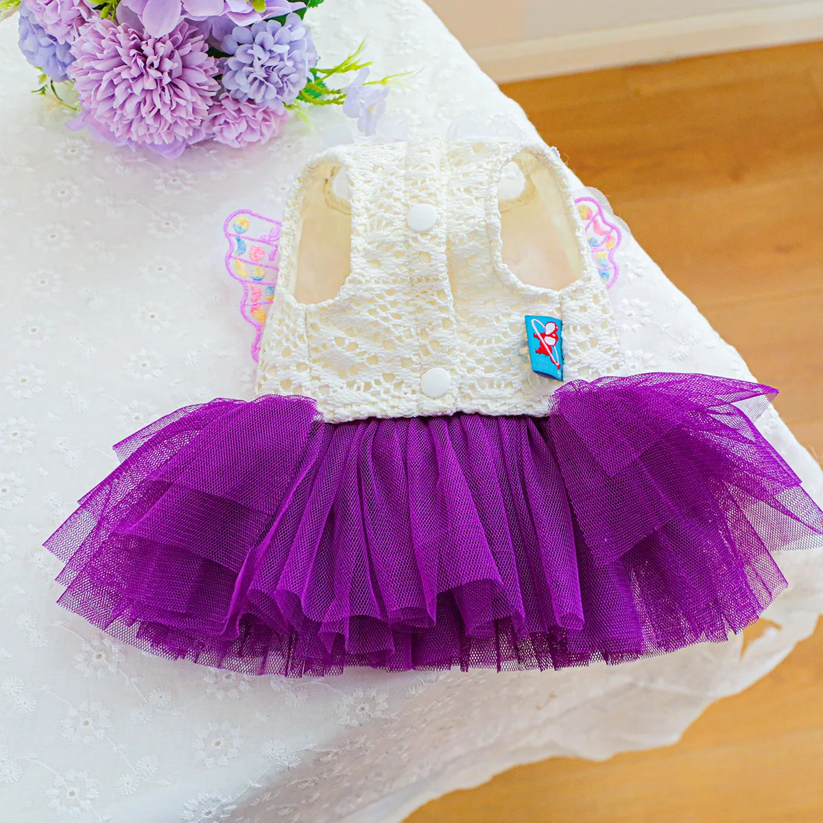 Ideal para cães e gatos de pequeno porte, este vestido une renda macia, tule volumoso e asas de borboleta em um design leve, confortável e simplesmente irresistível 🦋💖