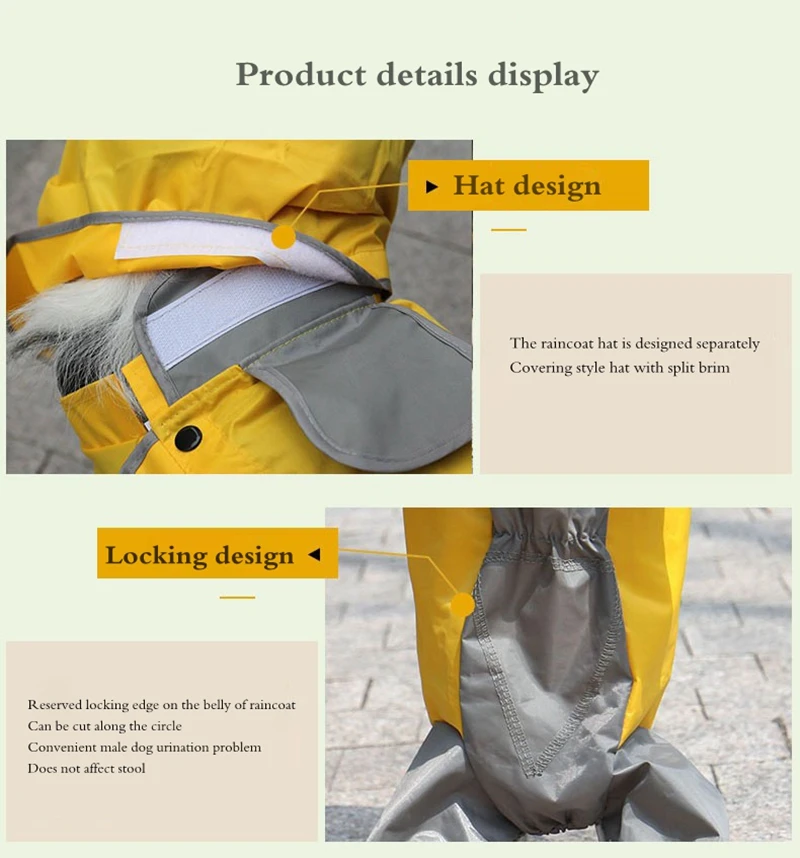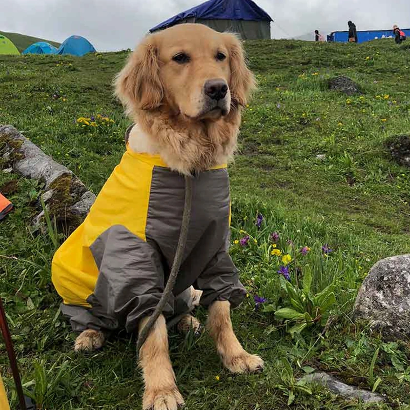 Essa capa de chuva impermeável com capuz foi criada para cães de porte médio e grande, garantindo cobertura completa, conforto e liberdade de movimento — mesmo em chuvas intensas.